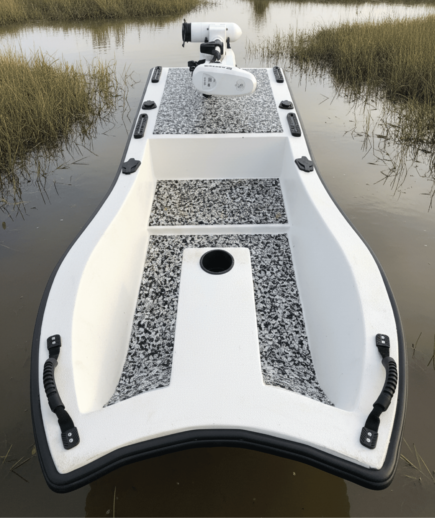 Sneak Boats are a quality designed product thats both easy to hunt and easy to fish. Made fully with composite materials to include a coosa reinforced deck, transom, and front box mount. This allows our boats to be structurally sound for front and rear motor mount options without compromising the strength and integrity of our products. All boats also come equipped with TACO rub-rails for added protection.
