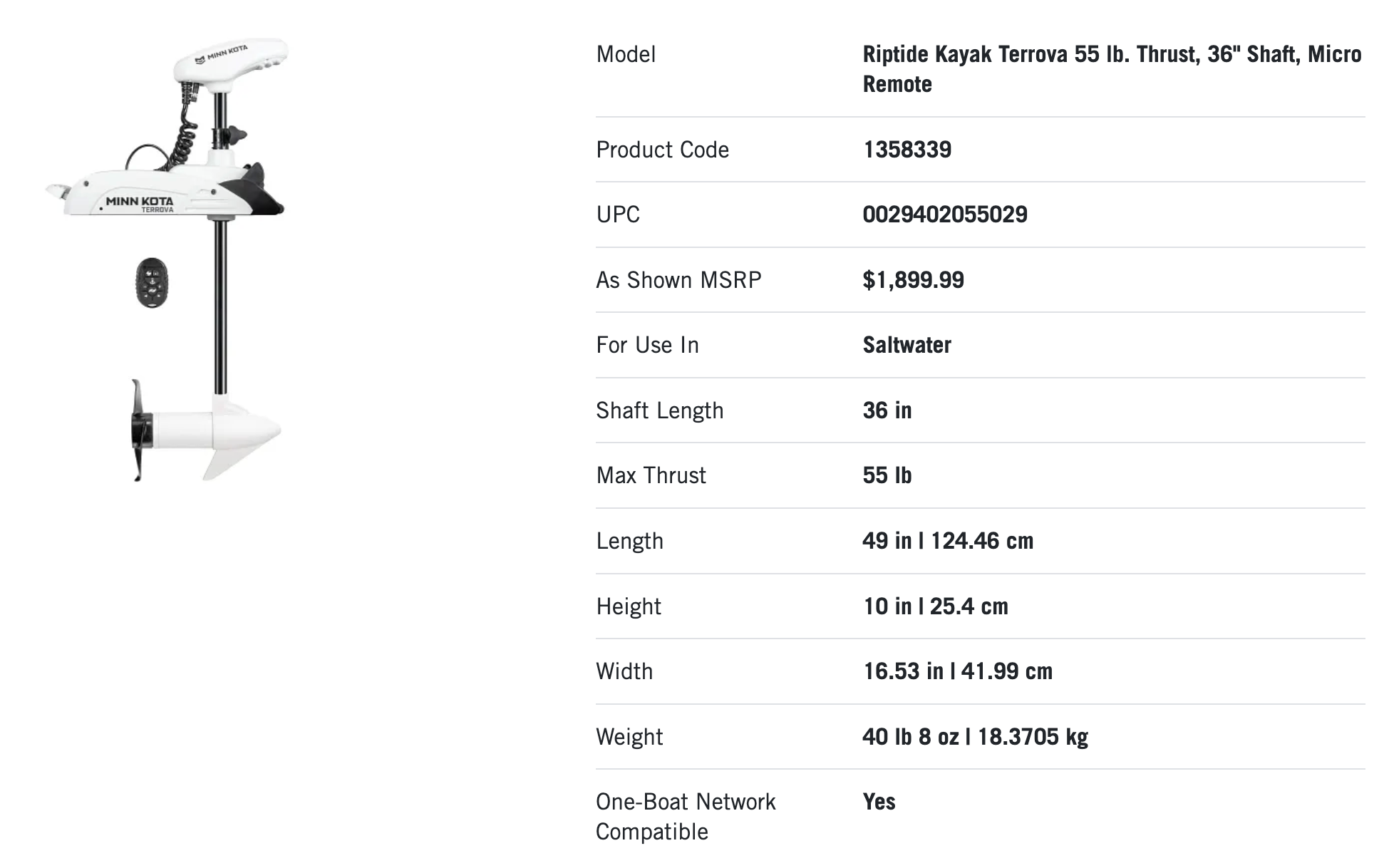F8 + Minn Kota Terrova 36" 55lb thrust
